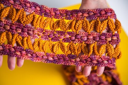 Crochet scarf pattern “LEAVES SONG” design includes: