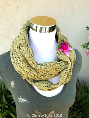 Leaves Strings Infinity Scarf This beautiful infinity scarf is a perfect balance of comfort and style. It features richly embossed leaves strings with I-cord stems. Despite it looks complicated; the stitch pattern is not at all tricky to work. Row by row instructions, pictures and knitting chart can help you to knit in a breeze.