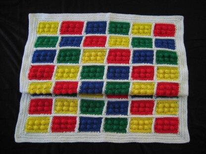 Lego blocks are made and then attached with trim color. Color combinations are endless. Written pattern as well as graph for color blocks placement included using the 4 basic color in photo; autism awareness. Size can be adjusted by adding or subtracting # of blocks used.
