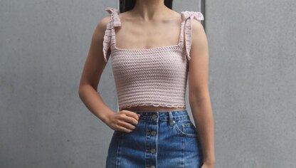 The Leila Tie Strap Crop Top is a super easy, cute, summer crochet crop top! The body is worked in the round and made up entirely of half double crochets (US terms), so you have a nice dense top but it works up a lot faster than single crochets. The foundation chain is replaced with foundation half double crochets so that the top can easily stretch and slip over your head. The top is finished off with scalloped chains for a fun, feminine touch and the tie straps add a cute bow detail. You can also easily alter this top to have normal thick straps for a cleaner look.