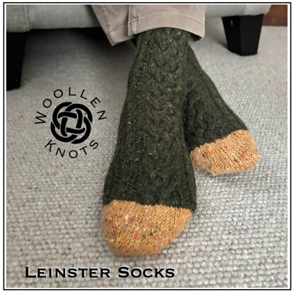 The Leinster Socks are part of the “Provinces of Ireland” sock designs, all using traditional Aran stitches to create interesting socks to knit and wear. In the Leinster socks, a cable braid down the centre of the sock front with smaller cables at the sides. The back of the leg is plain stocking stitch. Braided or plaited cables in aran knitting signify the interweaving strands of life. The braid is more intricate and looks more difficult to knit, but in reality it is only two types of cables, which are repeated to give this result.