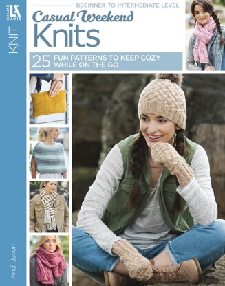Leisure Arts Casual Weekend Knits eBook- 25 go anywhere projects. Take your knitted creations on the go with fun, wearable projects. With scarves, hats, mittens, bags, and more, there's a design for every skill level and style. Projects could be given as gifts, but they might be too good to share. Develop your knitting abilities and get cozy with your creations. Most project use size 4 medium weight yarn, though size 2 fine, 5 bulky, and 6 super bulky weights are also used. 80 pages, PDF download.