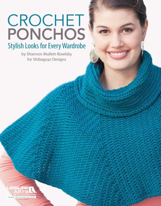 Leisure Arts Crochet Ponchos eBook- Stylish looks for every wardrobe that are easy to crochet and even easier to wear. 6 designs range from elbow to hip length, with something that will work for every outfit. Pair them with jeans, slacks or skirts to enjoy warm and original fashion every day. Designs include: circle, in-the-round, rectangle, triangles, accent panel, and border. Projects call for size 4 worsted weight yarn and crochet hooks ranging between US sizes F-5 and I-9. Includes step-by-step instructions, stitch guides and gauge information for each design. Finished designs are one-size-fits-most as written, but can be adjusted to be larger or smaller with the provided gauge information. Easy skill level. 34 pages, PDF download..