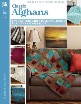 Leisure Arts eBook Classic Afghans- Add style, color, and warmth to any room in your home with The Best of Mary Maxim’s classic knitted afghans. Add a personal touch with these 10 intermediate skill level patterns. Designs are knit using various yarn weights, from size 3 light to size 5 bulky. Uses sizes 6 through 9 and size 15 knitting needles. Finished sizes range from 38”x 50” to 52”x 60”. 32 pages in a PDF digital download.