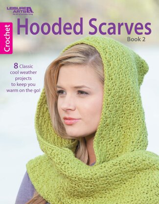 Leisure Arts Hooded Scarves Crochet Book 2 eBook- Presenting a look that turns heads, these hooded scarves will bring beauty and style to your cool-weather wardrobe. You'll love how quick they are to crochet. Choose a look that complements your personality, or make several so you can always match your mood, whether you're feeling sweet, sassy, or sophisticated. 8 designs include: Emma, Lisa, Angelina, Becky, and more. Projects call for size 4 medium and 5 bulky weight yarns, and crochet hooks in US sizes ranging between H-8 and K-10 1/2. Includes row-by-row instructions for each scarf and hood, which are crocheted separately then attched with slip stitches or whip stitching. Finished scarves measure between approximately 5 1/2"x 71 1/2" and 8"x 73". All patterns are easy skill level. 34 pages, PDF download.