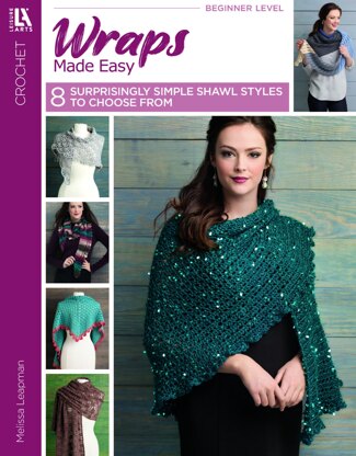 Leisure Arts Wraps Made Easy Crochet eBook- Crocheted wraps made easy for the beginning crocheter or those with experience who enjoy simple projects. 8 fabulous designs offer a variety of shapes and styles. Projects include: sparkle, shimmering purple, stepping out, pretty picots, light and lacy, lacy triangle, shawlette and leafy lacework. Each project can be made with either US size 2 fine, 3 light or 4 worsted weight yarn and a size D-3, G-6, H-8 or I-9 crochet hook; 3.25, 4, 5 and 5.5 millimeter hooks. Finished shawl sizes range between approximately 68"x 10" and 81"x 32". Easy skill level. Also available as a physical copy: LEA6998 Leisure Arts Crochet Pretty Ponchos Book. 34 page PDF download.