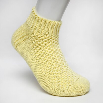 This is a toe up sock pattern, worked in one piece, from the toe up to the cuff. Casting on requires using a two needle cast on method. The toe of the socks is knitted first, before moving onto the foot, the gusset, the heel, then the leg and finally finishing on the cuff. A stretchy cast off is used to cast off the stitches of the cuff.