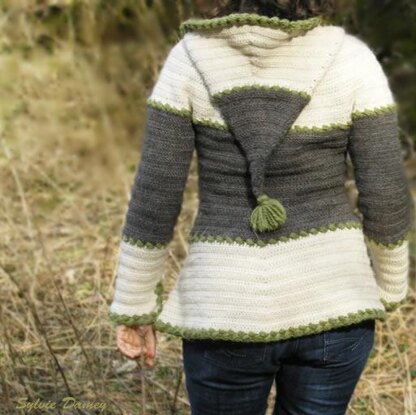 Crochet a fairy /pixie hooded jacket for women with this PDF tutorial. Includes instructions for 5 sizes from XS to XL.