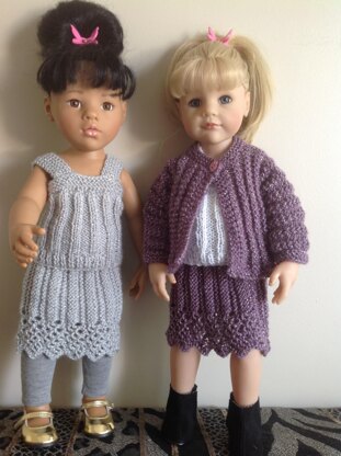 Delightful pattern for 18"/19" Girl Dolls Lace edged skirt, strap top and jacket.