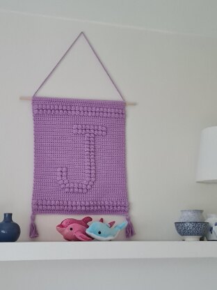 This letter J wallhanging would make a wonderful personalised gift to welcome a new baby, or to adorn an older child's bedroom, made in their favourite colour. This eye-catching design is a really quick make as it can be made in less than a day and looks striking.
