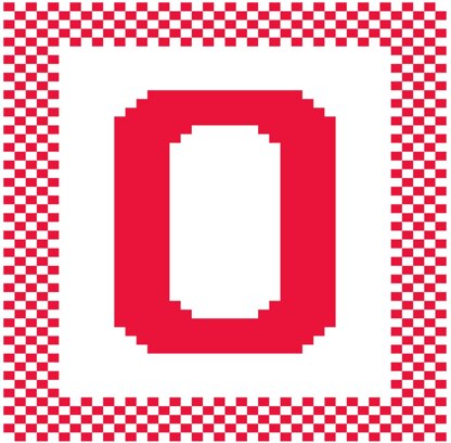 Hand-designed letter O dishcloth pattern. All of my patterns are free-drawn and converted to a pattern on knitting graph paper. I never use knitting pattern creation software to design my patterns. One skein of sugar n cream yarn on size 4 (US) needles is used to create each dishcloth.