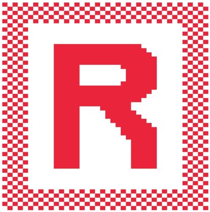 Hand-designed letter R dishcloth pattern. All of my patterns are free-drawn and converted to a pattern on knitting graph paper. I never use knitting pattern creation software to design my patterns. One skein of sugar n cream yarn on size 4 (US) needles is used to create each dishcloth.