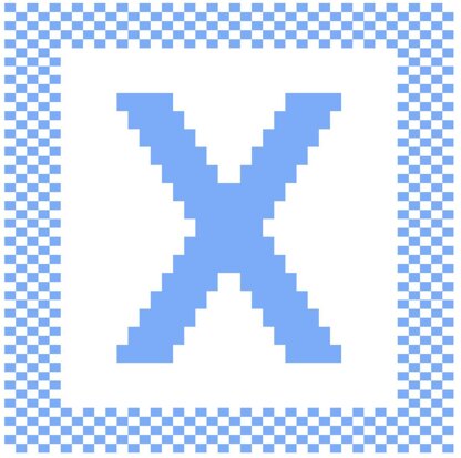 Hand-designed letter X dishcloth pattern. All of my patterns are free-drawn and converted to a pattern on knitting graph paper. I never use knitting pattern creation software to design my patterns. One skein of sugar n cream yarn on size 4 (US) needles is used to create each dishcloth.
