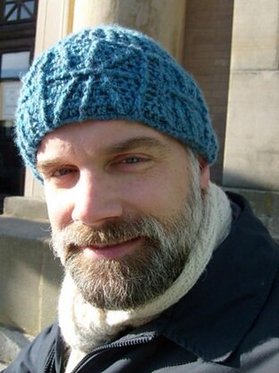 The Library Window Watchcap is worked in the round from the top down in post stich ribbing to grip the head on fast sledding runs. The direction of work switches at the post stitch cable brim so that it will flip up and be visible, not to mention keep the ears warm. But if you prefer a simpler cap, the straight section can be extended for another 8 to 10 rows for a plain watchcap.