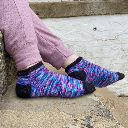 These socks are knit from the cuff down and feature a German short row heel and round toe. While made to have a contrast cuff, heel and toe. Pattern includes instructions for 3 sizes and is easily customizable to fit your foot perfectly; written for magic loop.