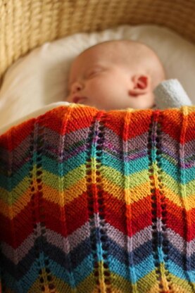 Parents and babies alike will be thrilled with this rainbow ripple blanket, either cot sized or the useful bassinet/stroller/car seat size.