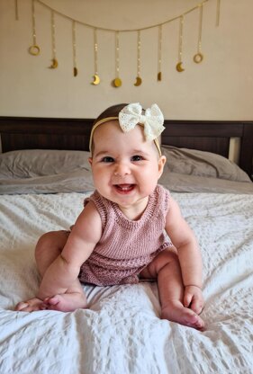 Unisex Baby and Toddler Romper Although fully gender neutral, the Lil’Sister Romper was inspired by my second daughter Luna and her big bright smile. It is a comfy vest romper that can be worn with tights and a long sleeve top underneath during cold weather, or on its own during summer months. It is worked bottom up, using Moss St in the main body and Stockinette at the chest. It sports an opening at the bottom for easy nappy changes. #LilSisterRomper