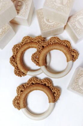 Description: "Little golden arcs emanate outward from a classic wooden ring, making the Lil' Sunshine Teether shine like the sun. This adorable project to make for baby is suitable for beginner crocheters, and equips you with highly-detailed written instructions, a photo tutorial within, a stitch glossary, links to video and photo tutorials, and more. If you're looking to make a delightful teether for your little cutie, then look no further than the Lil' Sunshine Teether crochet pattern!"