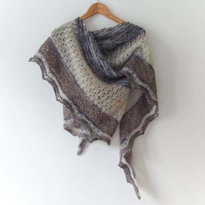 **Materials:**Approximately 100g/366m of fingering MC yarn, 50g/420m of lace/mohair silk CC1 yarn, and 50g/275 m of lace CC2 yarn.