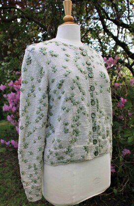 Lilia is a short/slightly cropped cardigan worked from the bottom edge and up. Lilia is designed for ’variegated/dip dyed’ yarn. Variegated/dip dyed yarn gives a fine fan pattern in a contrasting color placed randomly on the entire cardigan - the dyeing of the yarn determines the placement of the fan patterns. The cardigan has long set in sleeves (the yoke is worket in one piece / raglan construction).