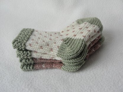 Sweet little color work sock pattern for baby boys and girls. Seamless styled toes and heels. Quick and easy little accessory to coordinate with unisex outfits. A fun and useful way to use up small bits of yarn.
