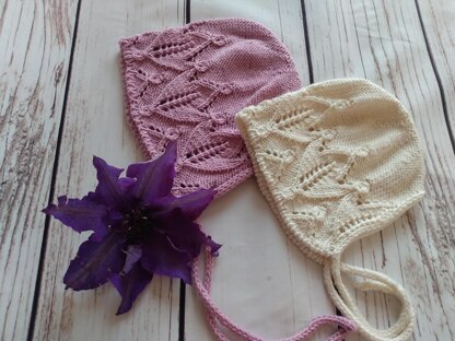 Lilly bonnet is sized for babies and toddlers. The intricate Japanese lace reminds of lilies and gentle summer sun. Tubular Cast-on gives the edge around face gentle ribbing and is stretchy enough to be comfortable for babies. I-cord ties that gently become lower edges give the bonnet an elegant finished look. The crown worked in reverse stockinette helps the lilies pattern to pop out.