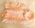 This is a very simple knit for people new to using knit in lace. I used the lace with broderie anglaise attached and added ribbon and flowers. Personally I think this is suitable for a beginner as the stitch is straight forward knit and purl and it is the lace that really brings it to life. Pictures do not do this design justice and you can really make it your own with whatever embellishments you add.