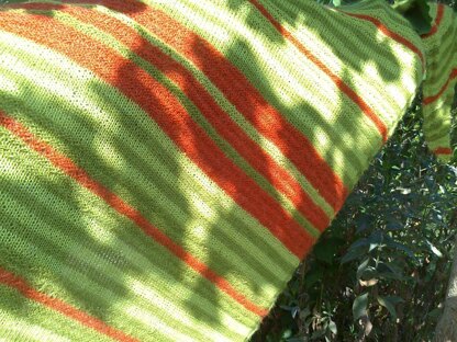 Lina ist ein dreifarbig gestreiftes Tuch. Durch die unterschiedliche Anordnung der Farben auf den beiden Tuchhälften entsteht ein Hell/Dunkel/Effekt.