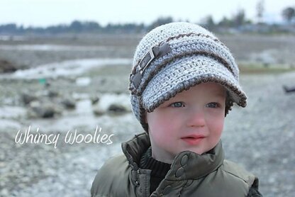 "Linden Newsboy" I created the ‘Linden Newsboy’ for my sweet grandson. Worked up in pewter tweed, trimmed with a warm brown and embellished with a buckle and strap. This hat is trendy and masculine for our little man!