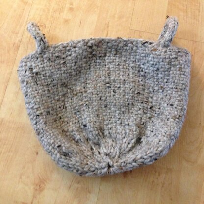 There are two options for sizing this little basket, Small or Large. You may need a second skein of the bulky yarn if you make the larger size. It is worked to the desired height. The Small basket is shown in photos.