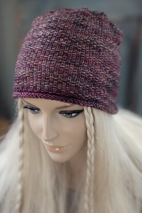 Cute beanie knitted in linen stitch. The linen stitch creates a nice, almost woven look.