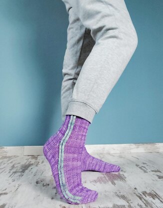 Lines is a modern sock knitting pattern featuring sporty side stripes that resemble classic track pants. As comfy as your favorite sweatpants, these socks are worked in sizes EU 22–51 with 5 widths for a perfect fit. Includes video tutorials!