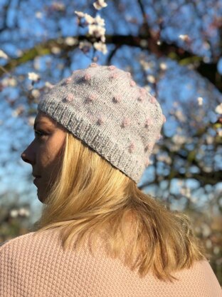 The Lingon hat offers a fun knit, and you can choose between two sizes of bobbles as well as two lengths of the hat, slouchy or beanie. The slouchy hat in the pictures have the smaller bobbles and the blue/pink beanie has the larger bobbles. Both beanie and slouchy are worked identical until the decreases.