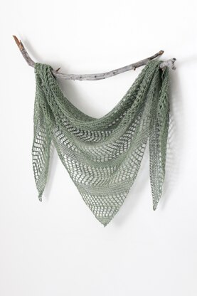 Airy and light Linum is a modern triangle shawl that begins from the bottom. You knit your way up, alternating garter stitch stripes with mesh lace blocks that change direction. The pattern plays with right and left slanting decreases. First the lace rows tilt to the right, then the lace changes direction and the lace tilts to the left. For accent, there’s a purl ridge row where the mesh changes direction. Between the lace blocks you take a breather with a few rows of garter stitch.