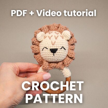 Create your own adorable crochet lion baby rattle with this PDF pattern + full video tutorial!