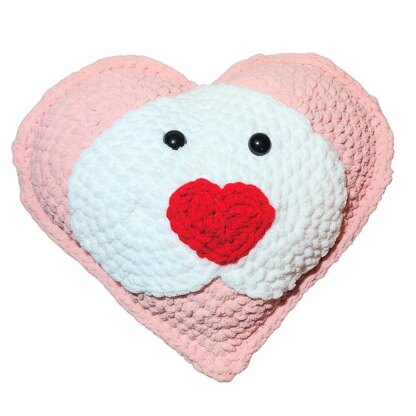Materials: Bernat Blanket Yarn: 30 yards White 150 yards Pink 2 yards Red Size M crochet hook Yarn needle Fiberfill