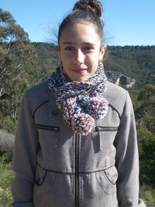 This is a pattern for a long Crocheted Scarf with a pom pom at each end . It is crocheted with three strands of yarn held together using UK terms . It is perfect for adults , older children and teenagers . My eldest grandchild designed it and made up the name .