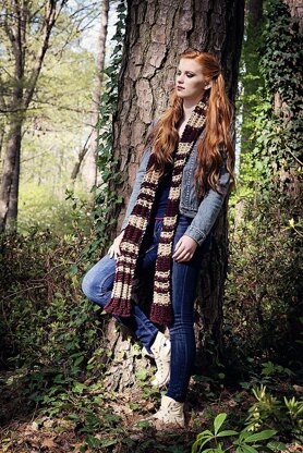 Lisette is easy to customize in your favorite school, team or House colors! Any two colors can be put together in this fun scarf. And though it's shown in super bulky weight yarn, you can use any weight you like simply by adjusting the CO stitches and repeating the stripe pattern.