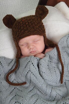 Cute and Cuddley Textured Little Bear Hat with Ear Flaps, Cords and Little Ears.