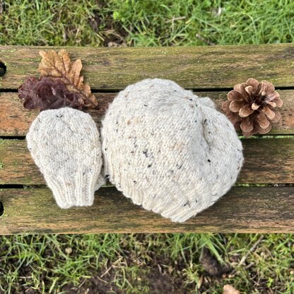 A beautifully textured hat and mitten set to keep your newborn baby cosy and warm. I've knitted this up in a soft tweed yarn and would also suit any baby pastel, a bold mustard or navy. The set Knits up quite quickly, and with only 2 ends to tie in on each piece, it’s ready in a breeze.