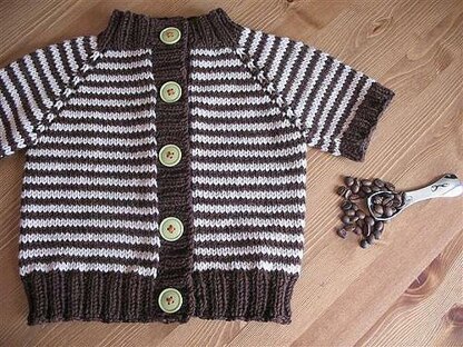 An easy, cute baby cardigan designed in 3 sizes. Top-raglan construction makes this a completely seamless design, perfect for your first sweater project.
