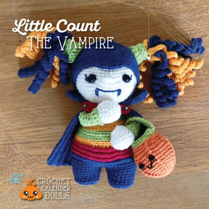 Little Count the Vampire is a one piece doll, with a cape and head cap. Don’t ­worry, she has a very little bite and lots of fun ­crocheting challenges!