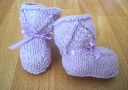 • The booties are worked flat and seamed along the sole and up the back of the leg.