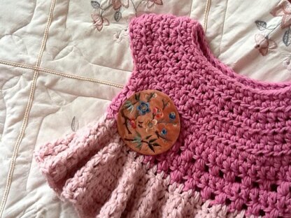 Textured with raised stitches. Gorgeous full ruffled dress skirt. Crocheted entirely in one piece with no seams. Unique design and so chic! Simple crochet stitches throughout.