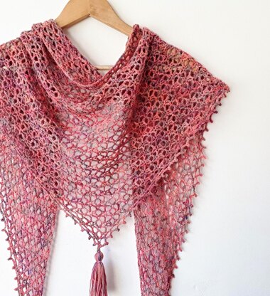 A shawl design with a beautiful drape, using only 400m of fingering weight yarn. A beautiful skein of yarn is all that is needed to show off this light and lacy shawl pattern. A wide wingspan to curl around your neck and shoulders - lovely as a Summer wrap, or a cosy scarf in colder months. Made using basic crochet stitches that combine to create an interesting pattern, that is relaxing and quick to crochet Includes a US and UK crochet terms version of pattern . Includes a crochet chart