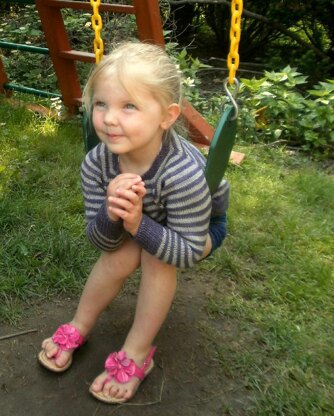 Fun stripes and two pockets to hold treasures make it perfect to wear while top down construction makes it easy to knit!