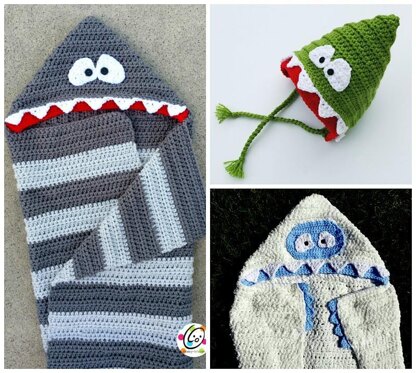 Instructions included for making a hooded blanket and hat as a shark, alligator and abominable snowman.