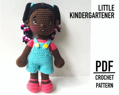 This sweet Kindergartener is ready for school days! You will be able to create the doll along with her braids and other hairstyles and the jumper as shown.