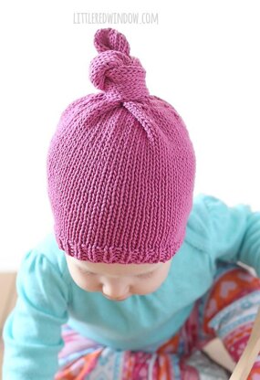 This adorable knit top knot hat knitting pattern is a fun and easy knit and can be made for boys or girls! It makes a great baby shower gift and if you knit it in cotton yarn, it's perfect for spring and fall!