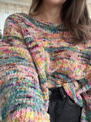 This sweater is knitted top down in the round, with raglan increases and german short rows for a nice fit. It is designed to be quite boxy and oversized. Body and sleeve length are chosen by you. There is also a variety of neckline and cast off options so you can add your preferred style. To get your perfect fit, knit the size you would usually wear for a relaxed fit or size down if you would like it more fitted.